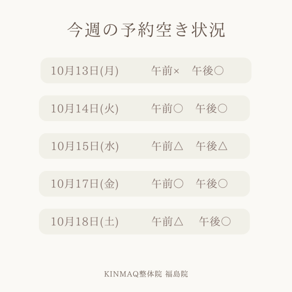 今週の空き状況ををお知らせいたします💁🏻‍♀️